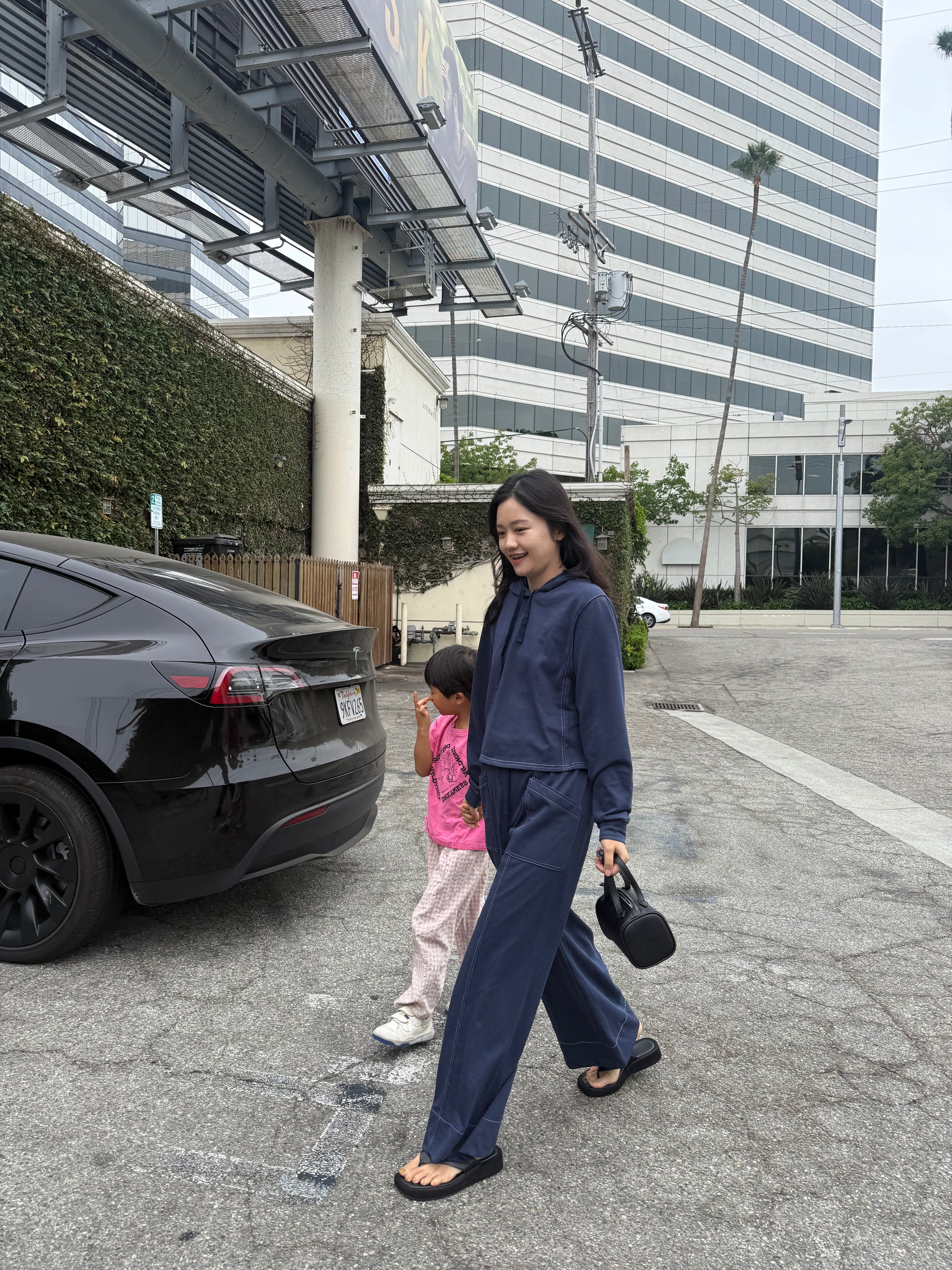 - 모던한 실루엣: 드롭 숄더 상의와 와이드 팬츠가 조화롭게 어우러지는 구조적 디자인