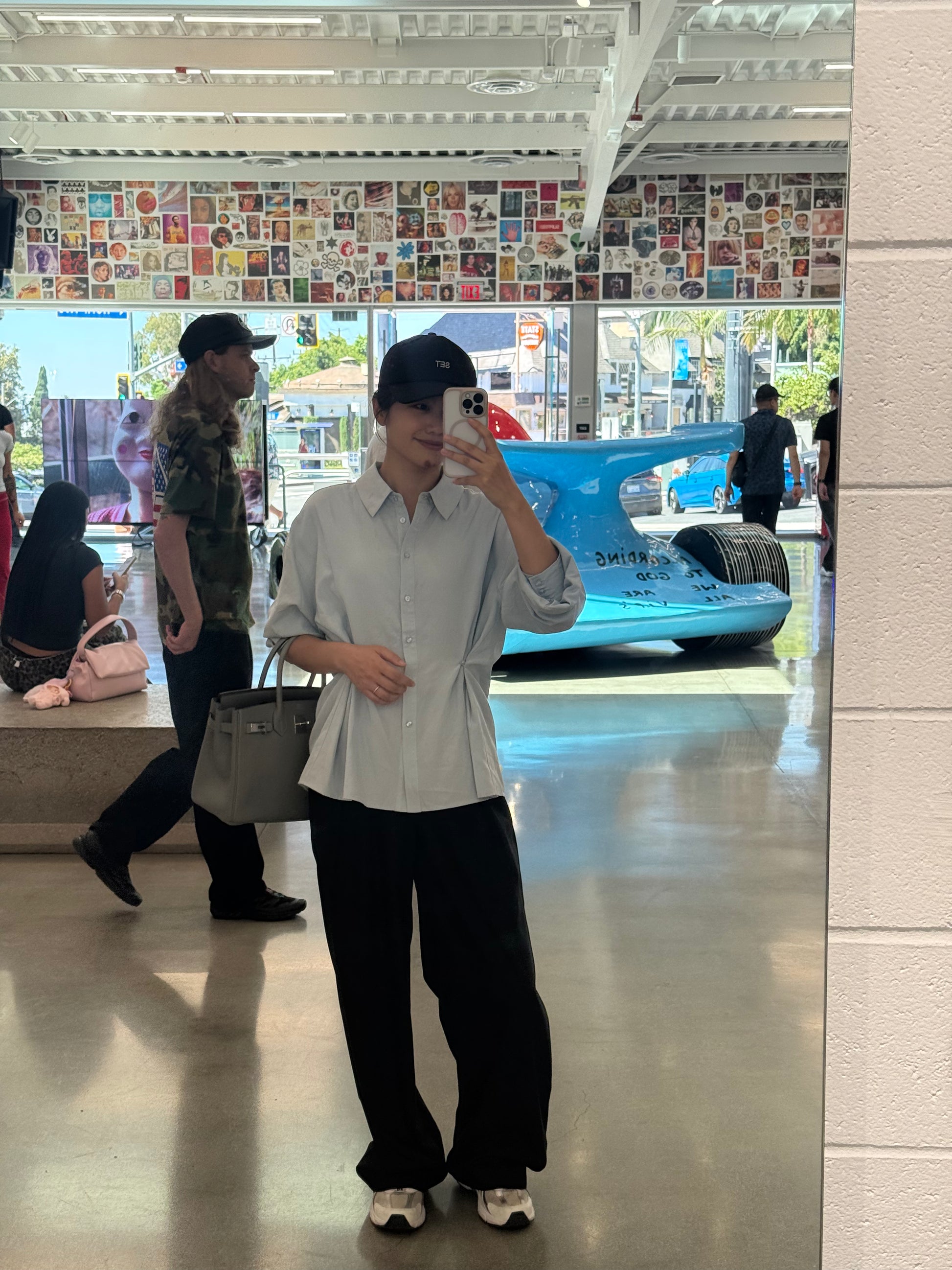 - 핏: 여유 있는 레귤러핏 (힙을 살짝 덮는 기장감)
