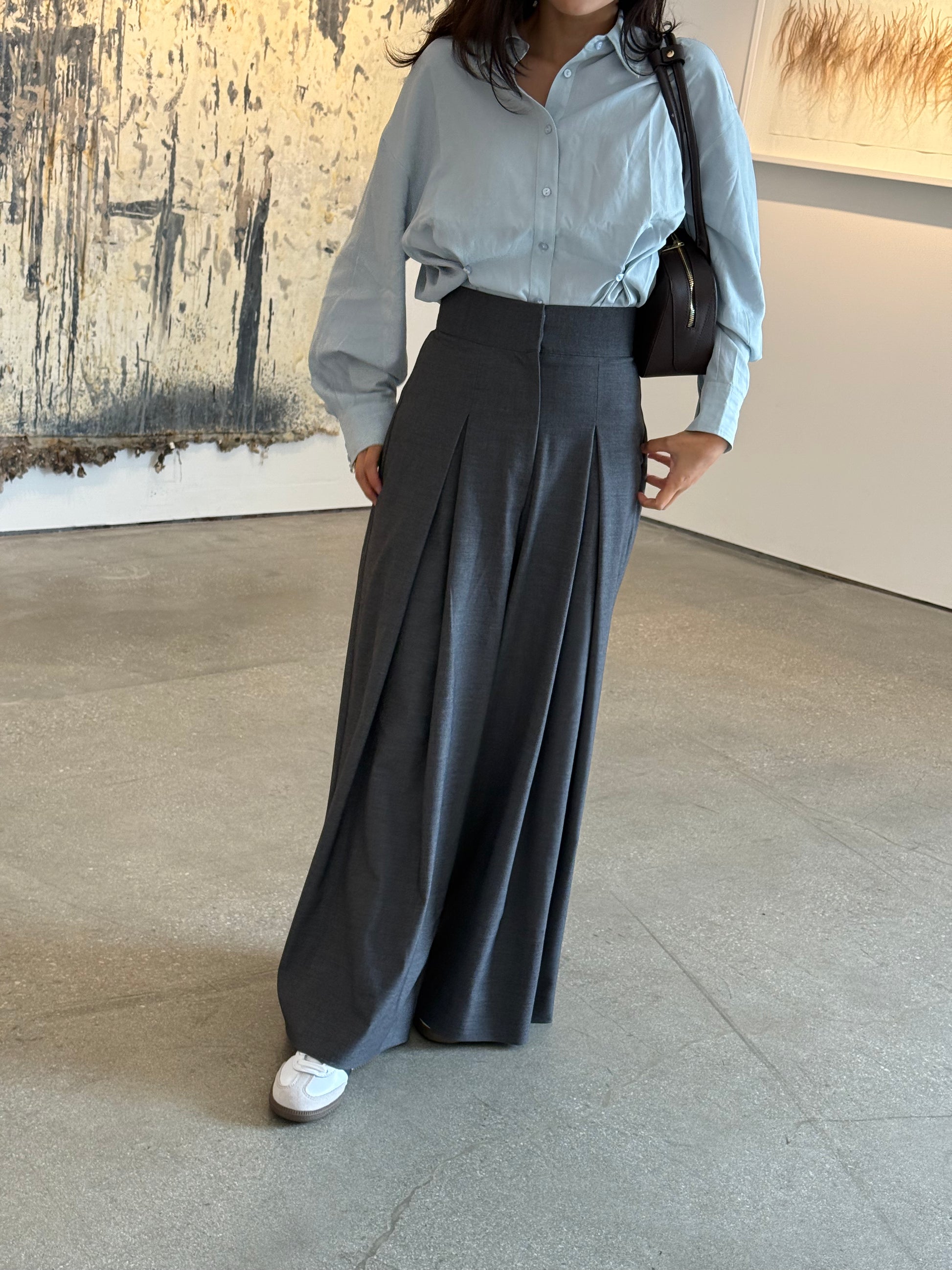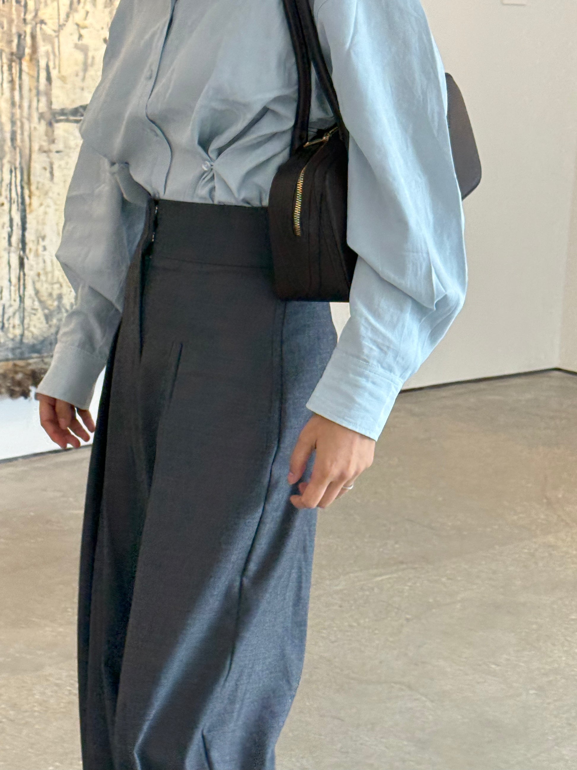 사이드의 핀턱 디테일과 버튼 노트가 허리선을 자연스럽게 연출해주어 페미닌하면서도 담백한 무드를 완성합니다. 데일리에서 오피스까지 활용도 높은 두 가지 컬러로 구성되었습니다.